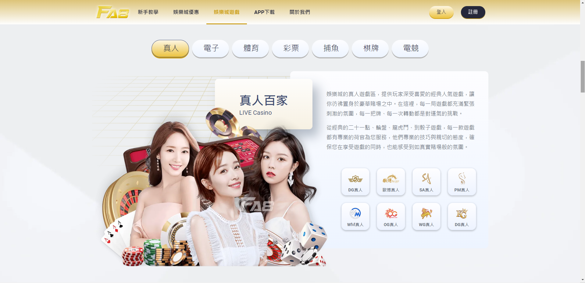 真人:OB真人、OG真人、WM真人、DG沙龍真人、OBO真人、SA沙龍真人