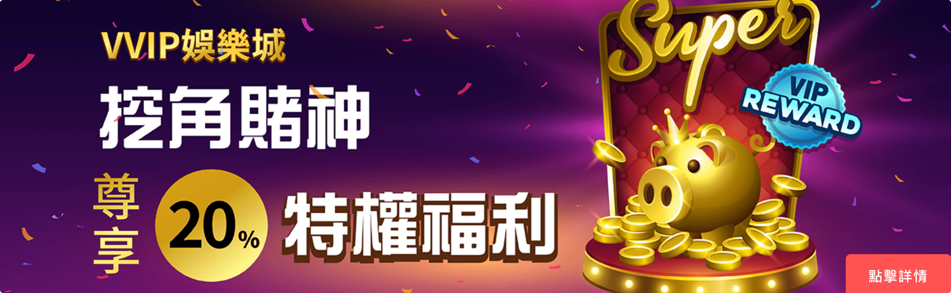我們非常自豪地宣布VVIP娛樂城的紅利彩金和遊戲返水優惠活動,為您提供了更多的機會以最大化您的投資回報!